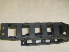 TKP025系列桥式拖链适合于使用在往复运动的场合,能够对内置的电缆, 油管,气管,水管等起到牵引和保护作用.拖链每节部能打开,便于安装和维修.运动时噪音 低,耐磨,可高速运动.拖链已被广泛应用于数控机床,电子设备,石材机械,玻璃机械,门窗机械,注塑机,机械手,起重运 输设备,自动化仓库等.一般应用在机床机械等的电缆、油管、气管、水管、风管上,起牵引和保护作用。现在的TKP025系列桥式拖链已经广泛使用在机床上,保护了电缆等也使机床整体看起来更美观。拖链内部分隔无懈可击,并俣证使用电缆达到最佳保护状态.可完全适用于海上石油平台和金属加工切削机械和冶金机械.钢铁制造等行业领域.的优势就是完全可承载数量多,重量大的电缆及油管,自由悬置(允许不用支撑轮)长度大.http://www.zhongxinjc.com/